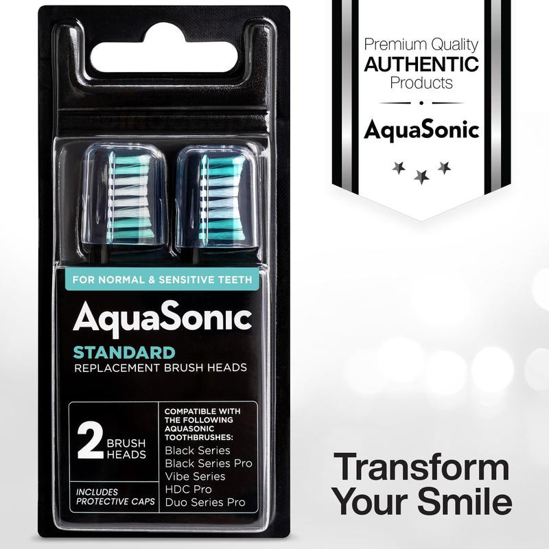 REPLACEMENT BRUSH HEADS: Compatible with the following toothbrush handles: Black Series, Black Series Pro, Vibe Series, HDC Pro, Duo Series Pro & Elite. Get the best performance out of your AquaSonic toothbrush by choosing authentic AquaSonic replacement brush heads. These DuPont-engineered Standard brush heads are curved to contour to the tooth surface, while the tapered bristles effectively clean between teeth and along the gumline.